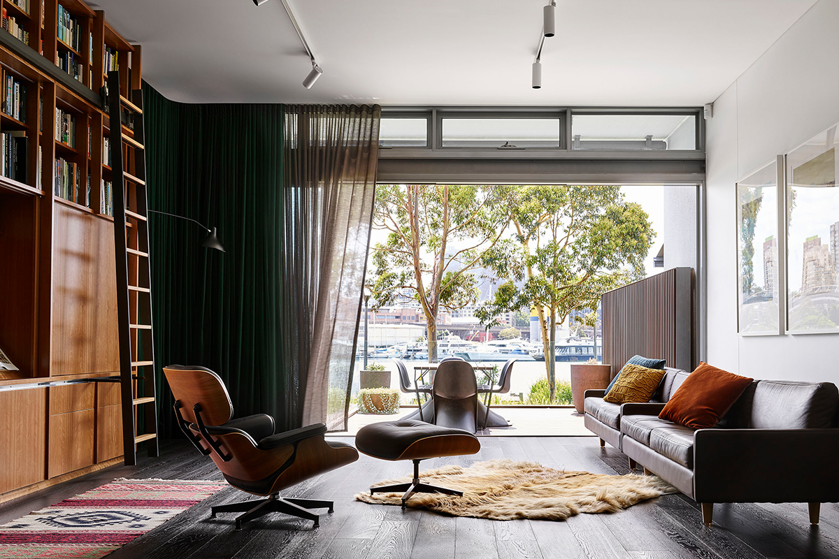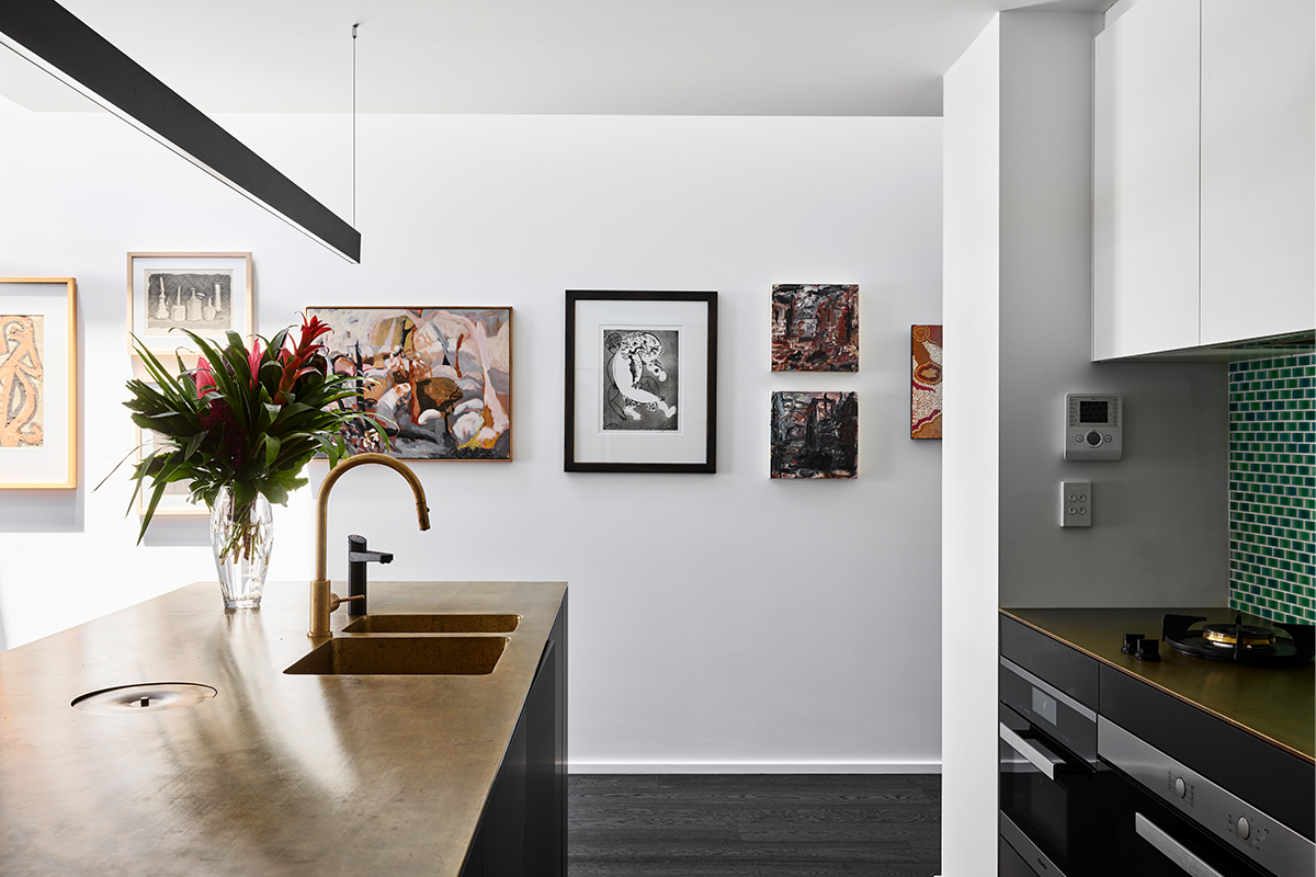 The Sam Crawford designed terrace refurbishment located on Glebe’s Blackwattle Bay park and waterfront was all about bringing the internal living space up to speed with the architecture of the building after having been left wanting in its original development. Works involved a full strip out of finishes and services, conversion of an existing basement storage area into living space and study mezzanine, new joinery and raw steel throughout, brass and stone benchtops all with minute attention to detail.